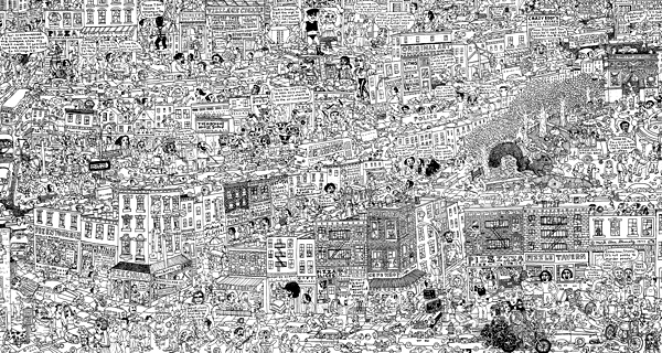 I’ve done a lot of crowd-scene pictures in my career in this style and in somewhat differentiated approaches, so this assignment was “right up my alley” and a pleasure. And eventually I met Will Hermes, who is a very nice guy.