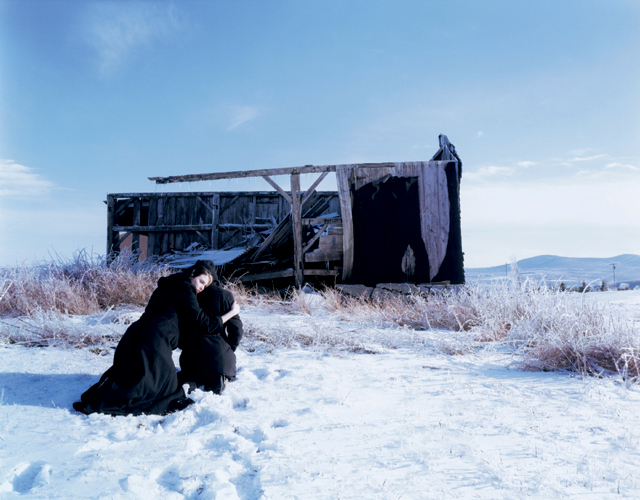 Two Octobers before, in 2001, something truly terrible happened to Cara. That October, she was raped in the woods while she was out walking her dog. Cara had feared going outside since the early autumn attack, shutting herself in. I’d hoped that if we went outdoors together, Cara might be less afraid; so I selected the near New England landscape as our backdrop. I naively hoped that photography might help heal her, and for a time it did. Posing gave Cara power. The brutal cold and beautifully dramatic weather was our perfect mirror.