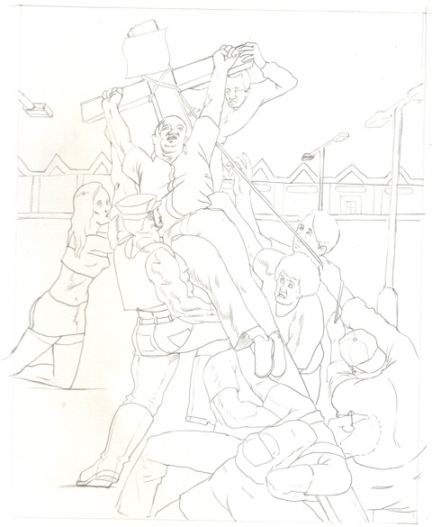 A while later Eli showed me Kevin’s sketch, based on Peter Paul Rubens’ The Elevation of the Cross.